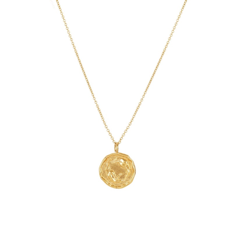 TheEspoir Necklace is made from18ct yellow gold plated recycled brass, and crafted in the designer’s London studio, through the process of lost wax casting. The necklace depicts two women dancing joyfully with abandon on the front, Espoir meaning hope, is engraved on the reverse.