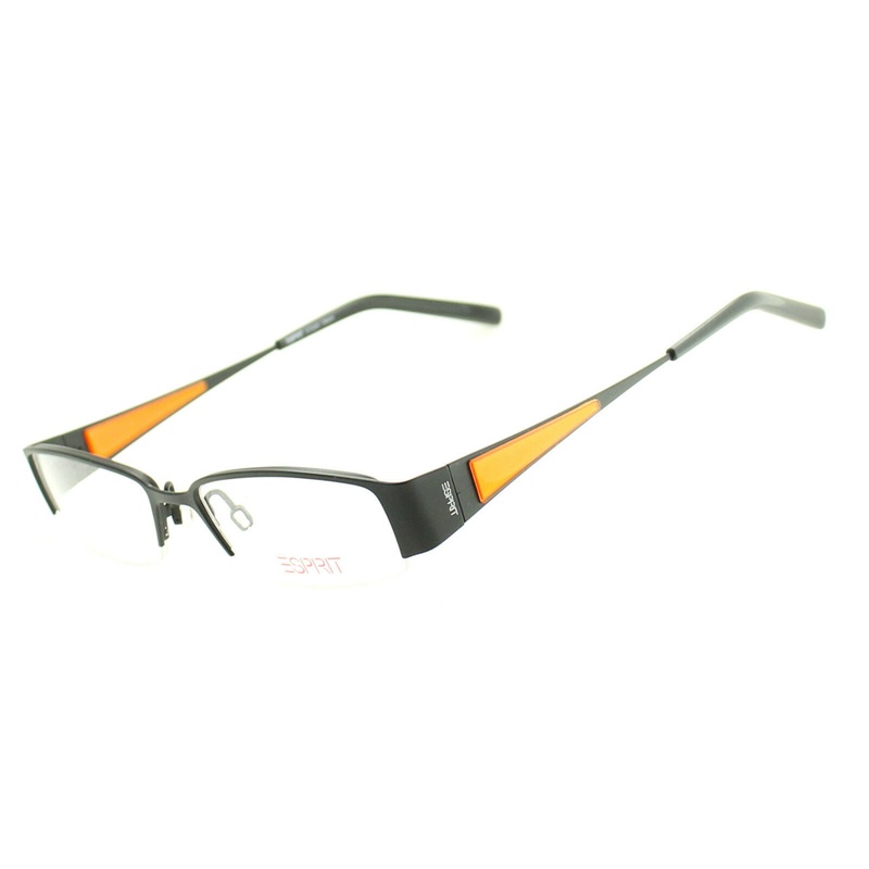 ESPIRITHalf Rim Frames -100% Authentic - ET9385 538Matte black metal frames with matching sides and gloss transparent orange inserts, gloss black acetate end coversAdjustable nose padsfor a comfort fitNever been wornLens Width = 50mmFrame Height = 27mmBrid