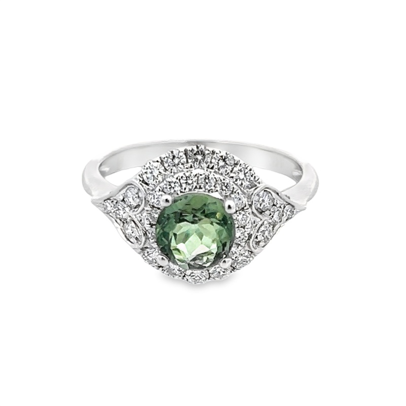 White 14 Karat Alexandrite Double Halo Ring Estate Jewelry Size 7.5 With One 1.33Ct Round Alexandrite And 33=0.57Tw Round G/H Vs1/Vs2 Diamonds Gram Weight: 3.85Jewelry Type: Color Fashion