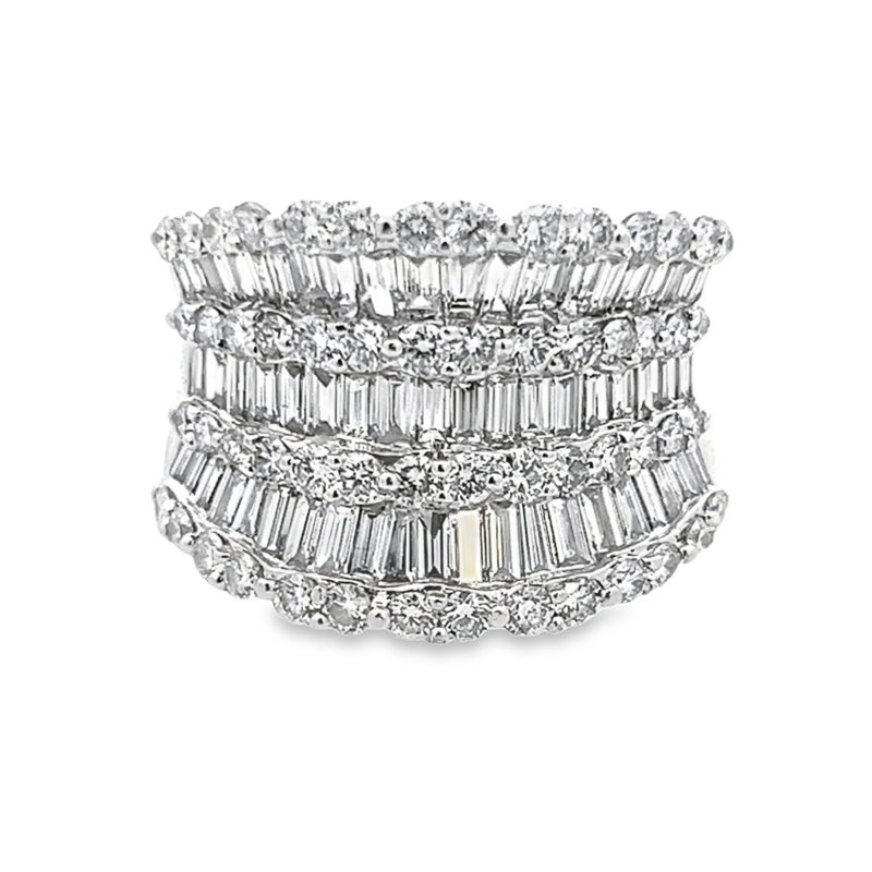 Estate 18 Karat White Gold Baguette & Round Diamond Wide Band, Size 9 With 115=3.30Tw Combo - Multiple Shapes G/H Vs2/Si1 Diamonds