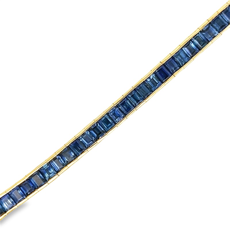 Yellow 18 Karat Blue SapphireTennis Bracelet Estate Jewelry Length 7 With 58=19.44Tw Baguette Sapphires Gram Weight: 24.1Jewelry Type: Color Fashion