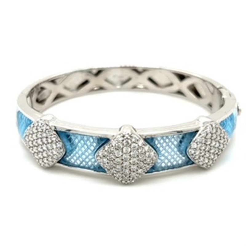 Estate 18KT White Gold Carved Blue Topaz and Diamond Bangle Bracelet, four (4) carved inlaid blue topaz gemstones and 147 diamonds, approx. .93ctw, SI1/GH, designer Robert Wander (Winc Creations of Honolulu), 45.60grams.
