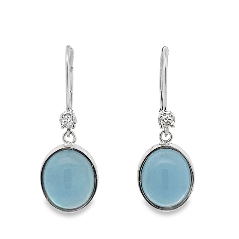 Estate 14 Karat White Gold Cabochon Aquamarine Drop Earrings, 2=8.48TCW Oval Very Slightly Greenish Blue Si1 Very Slightly Grayish Aquamarines, Gram Weight: 4