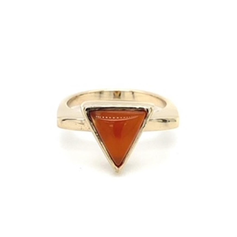Estate Ladies Stack Ring, squared top with one (1) bezel-set 8.5mm triangular cabochon carnelian gemstone, 14KY, 4.5grams.