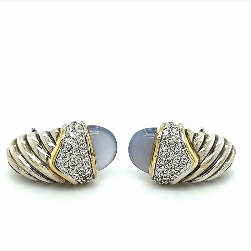 Two-Tone 18 Karat/ Sterling Dy Chalcedony & Dia Earring Estate Jewelry With 48=0.48Tw Round G/H Si1/Si2 Diamonds Jewelry Type: David Yurman