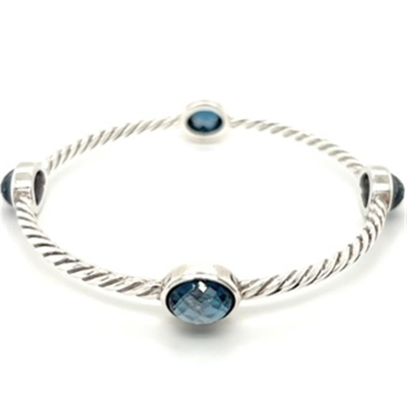 Estate David Yurman Sterling Silver Station Slip-on Bangle Bracelet with four (4) oval blue topaz gemstones, 19.5grams.