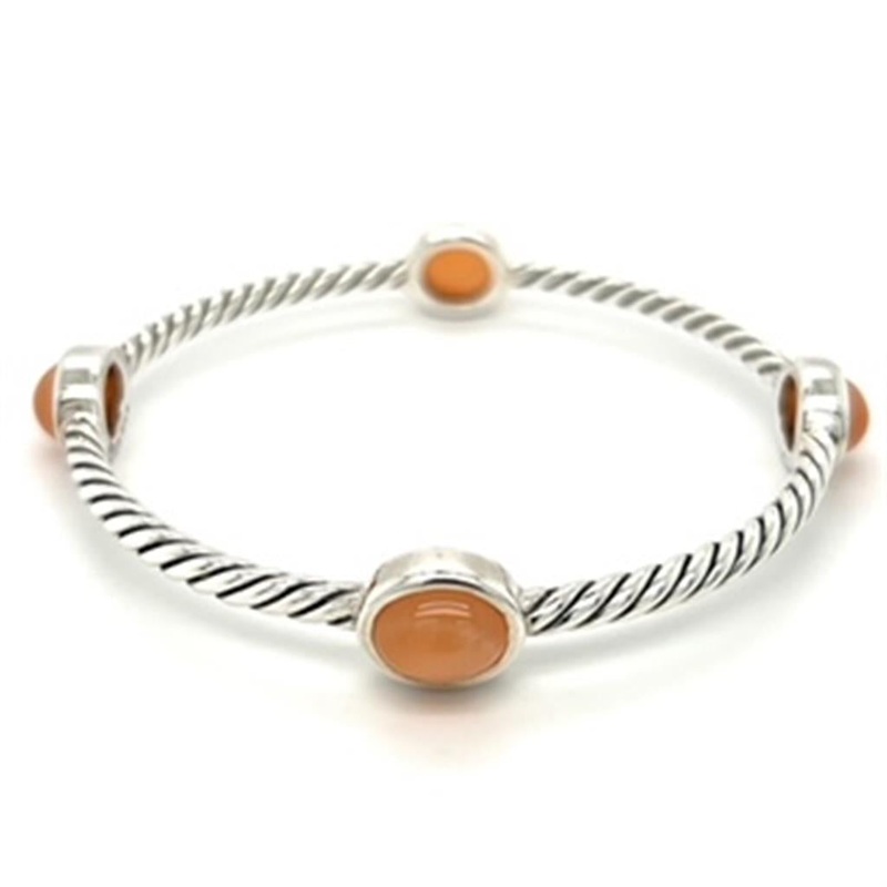 Estate David Yurman Sterling Silver Station Slip-on Bangle Bracelet with four (4) oval cabochon peach moonstone gemstones, 21.2grams.