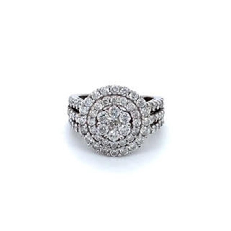 Estate Ladies 10 Karat White Gold Double Halo Diamond Cluster Ring, 73 diamonds, 5.1gr, approx. .75ctw I1/IJ