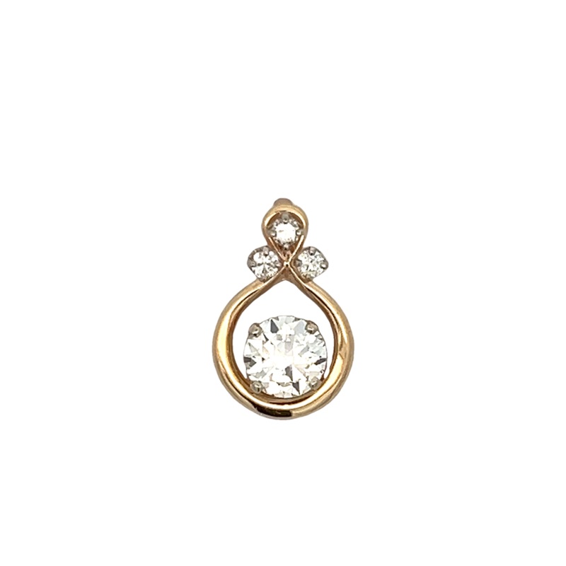 Yellow 14 Karat European Diamond Pendant Estate Jewelry With One 1.75Ct European-Cut K Si1 Diamond And 3 0.18Tw Round H/I Si2/I1 Diamonds Gram Weight: 3.6Jewelry Type: Diamond Fashion