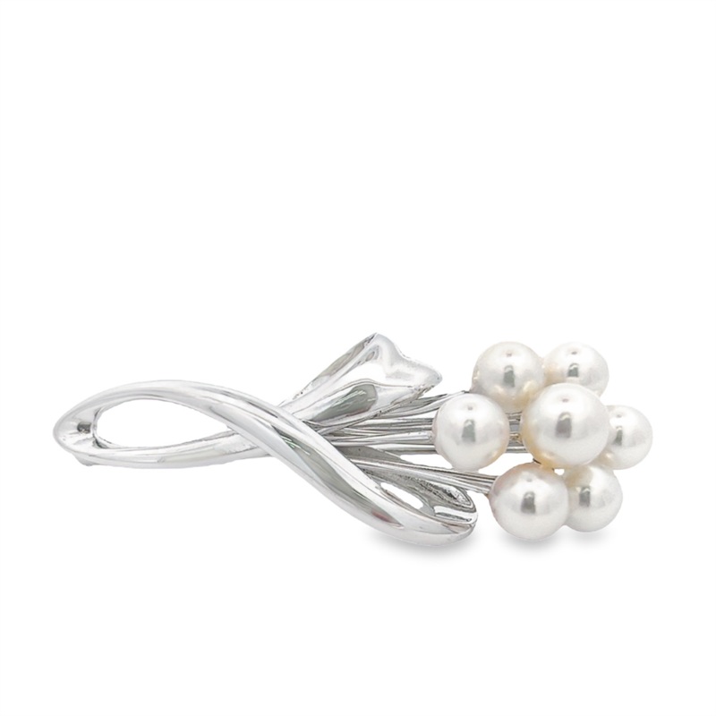 Estate Faux Pearl Brooch SILVER, no trademark, seven (7) faux pearls