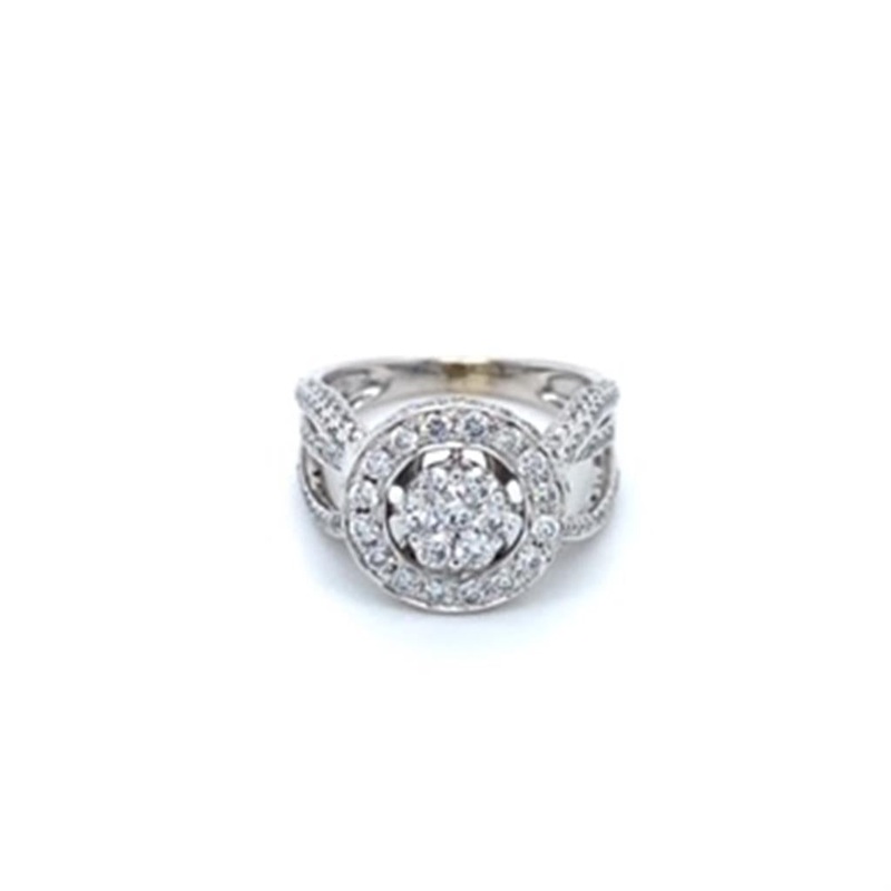 Estate Ladies 18 Karat White Gold Illusion-top Halo-style Diamond Cluster Ring with Bridge Undercarriage, approx. 1.54ctw, 18KW.