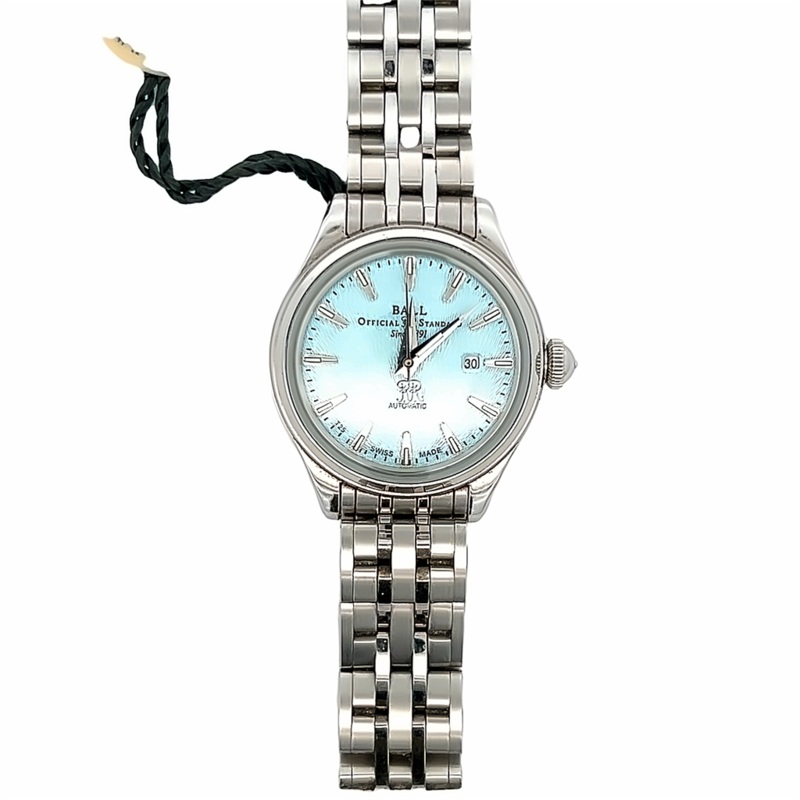 Stainless Steel Ladies Trainmaster Automatic Ice Blue Dial Estate Jewelry Jewelry Type: Ball Watches- 30mm Case- 30m Water Resistant- Sapphire Caseback- Model # NL2080D- S2J- IBE- Serial # 2909000