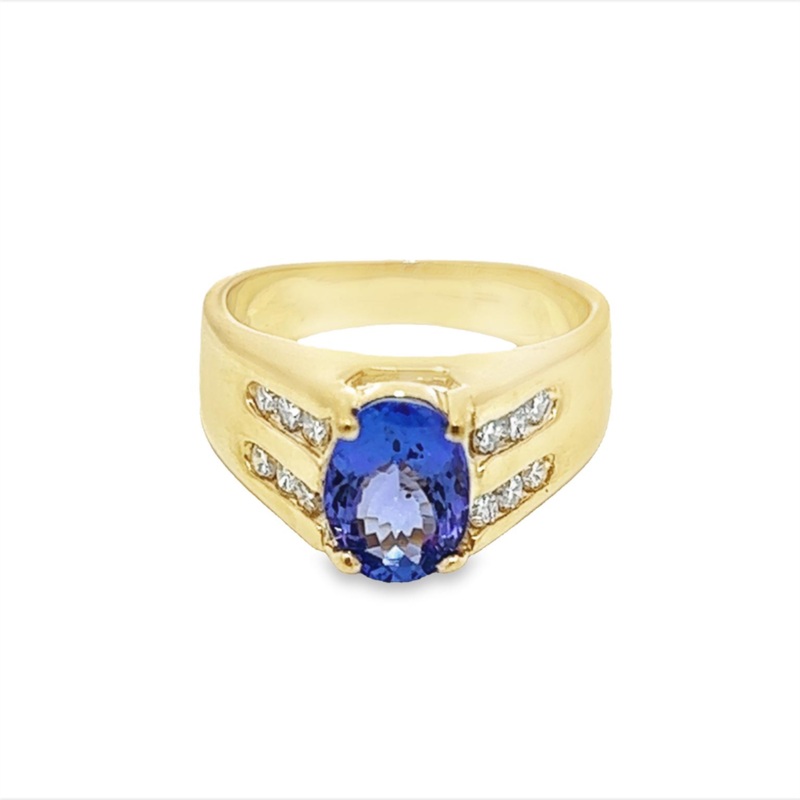 Yellow 14 Karat Le Vian Oval Tanzanite & Diamond Ring Estate Jewelry Size 6.5 With One 1.75Ct Oval Tanzanite And 12=0.40Tw Round H/I Si1/Si2 Diamonds Jewelry Type: Color Fashion