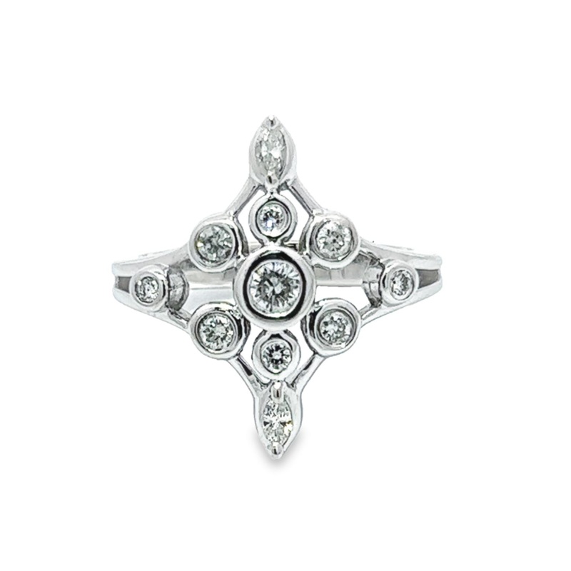 White 14 Karat Multi Bezel Diamond Ring Estate Jewelry Size 7 With 11=0.50Tw Combo – Multiple Shapes H/I I1 Diamonds Jewelry Type: Diamond Fashion