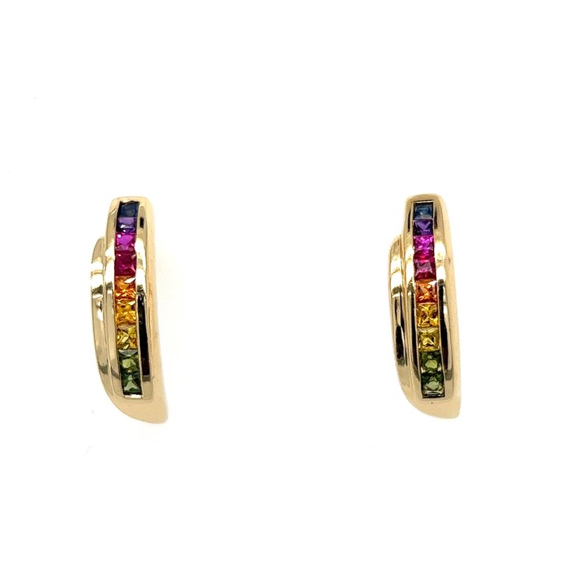 Yellow 14 Karat Multi-Sapphire Earrings Estate Jewelry With 18=1.05Tw Prin Multi-Color Sapphires Jewelry Type: Color Fashion