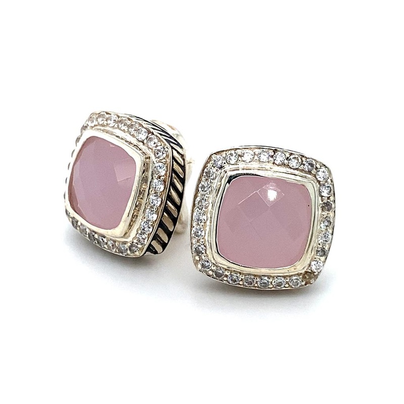 Sterling Silver Rope Dy Earrings Estate Jewelry 2= CUSH Rose Quartz56= Round Diamonds Gram Weight: 13.2Jewelry Type: omega back earrings