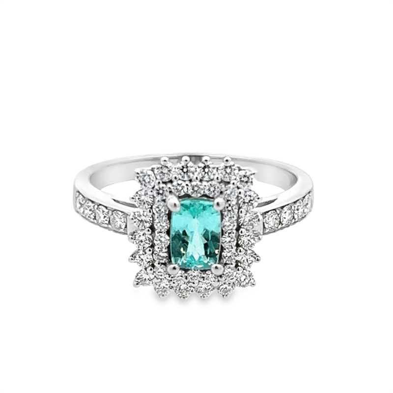 Be the first to review “Estate Paraiba Tourmaline Double Halo ring” Cancel reply