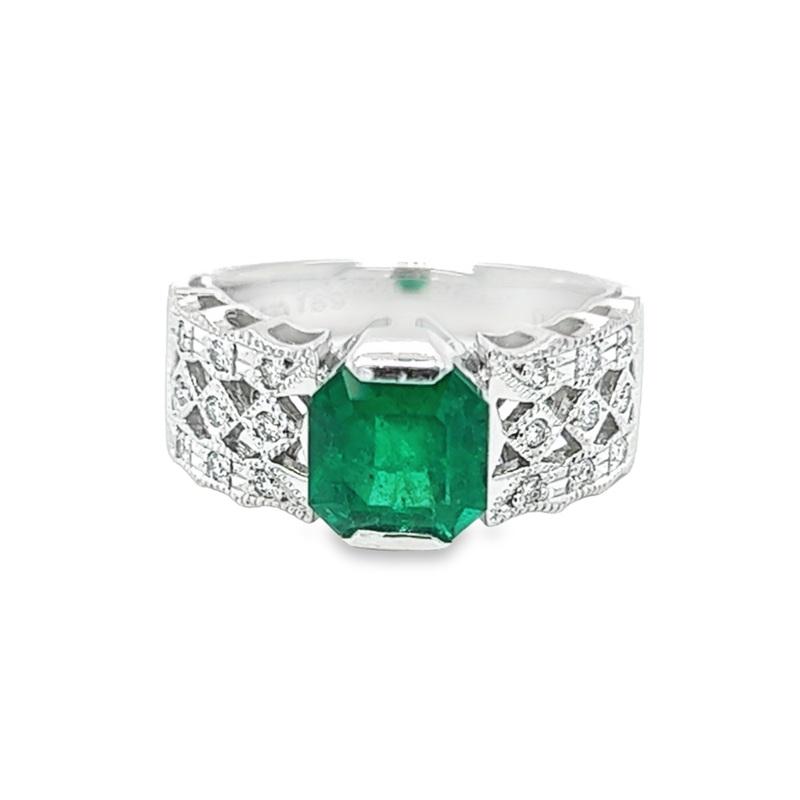 Platinum Asscher Cut Emerald Diamond Ring Estate Jewelry Size 6 With One 1.89Ct Emerald Emerald And 18=0.09Tw Round H/I I1 Diamonds Jewelry Type: Color Fashion