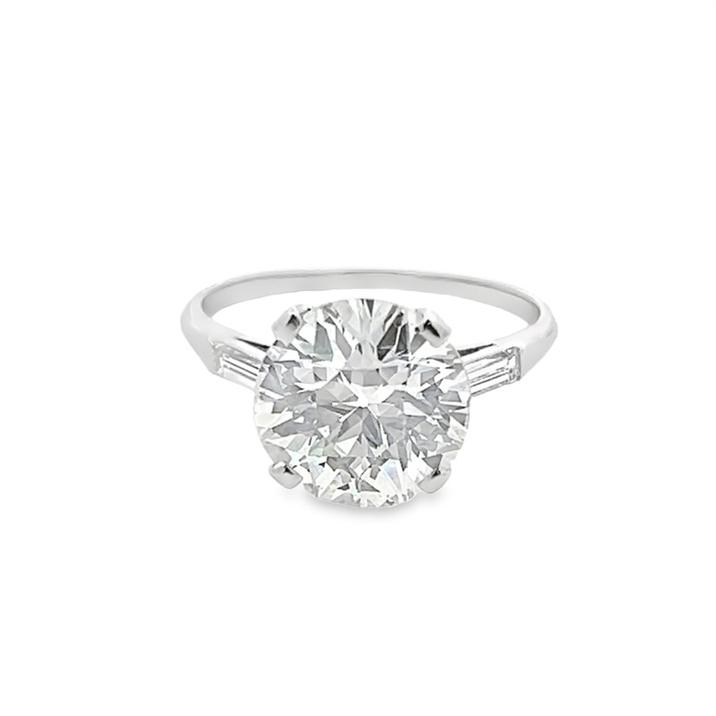 Platinum European Cut W/ Baguette Ring Estate Jewelry Size 6.75 With One 4.15Ct European-Cut I/J Vs1 Diamond And 2=0.50Tw Baguette E/F Vvs2 Diamonds Gram Weight: 3.4Jewelry Type: Diamond Engagement