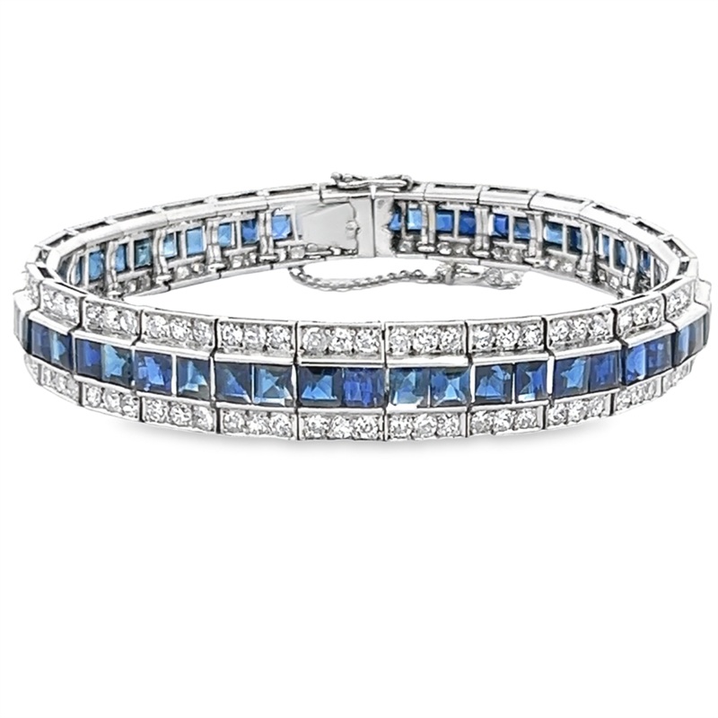 Platinum Sapphire & Dimaond Bracelet Estate Jewelry With 55=26.55Tw Princess Vs Sapphires And 162=4.86Tw European-Cut F/G Vs1/Vs2 Diamonds Gram Weight: 36.2Jewelry Type: Color Fashion