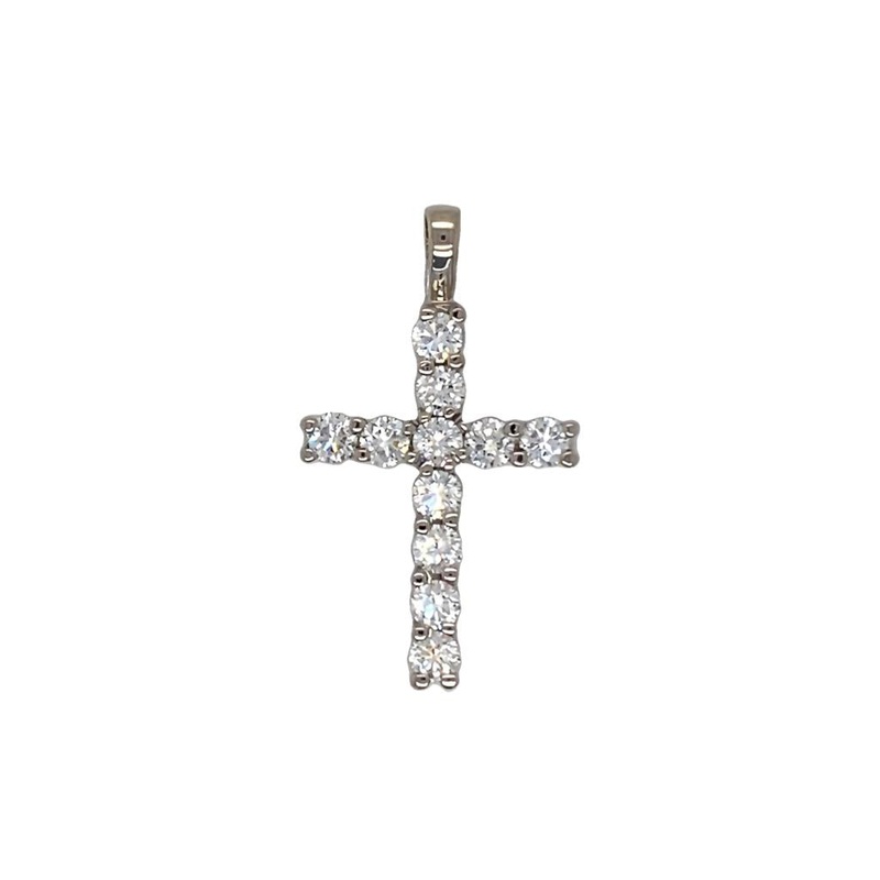 Estate 14 Karat White Gold Prong Set Diamond Cross Pendant, With 11 = 1.51Tw Round G/H Si1 Diamonds, Gram Weight: 3.6