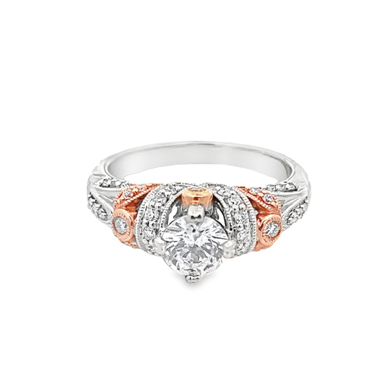 Diamond Semi-Mount Rings Style=vintage design Metal=18 Karat Color=White/ Rose Finish=Engraved Ring Size=7.5 Designer=Nelson