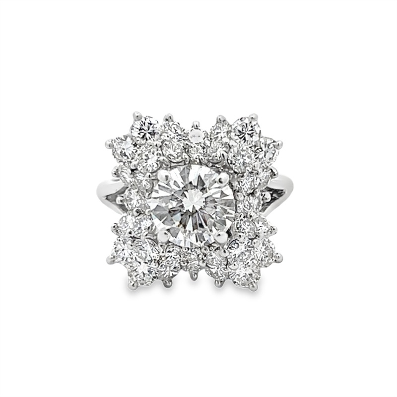Estate Platinum Round Center Cluster Ring Estate Jewelry Size 4.25 With One 1.33Ct Round J Si1 Diamond And 36 1.80Tw Round H/I Si1/Si2 Diamonds Gram Weight: 8.2Jewelry Type: Diamond Fashion