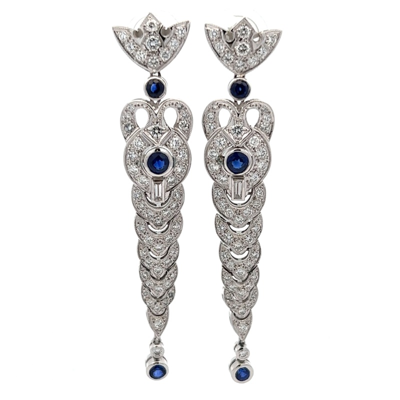 White 18 Karat Sapphire & Diamond Drop Earrings Estate Jewelry With 106=2.12Tw Combo - Multiple Shapes G/H Vs2/Si1 Diamonds And 6=1.00Tw Round Sapphires Gram Weight: 25.42Jewelry Type: Color Fashion