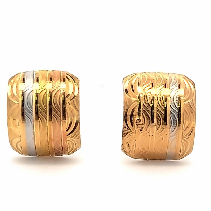 Estate Tri-Color 18 Karat Wideband Earrings With Omega Backs