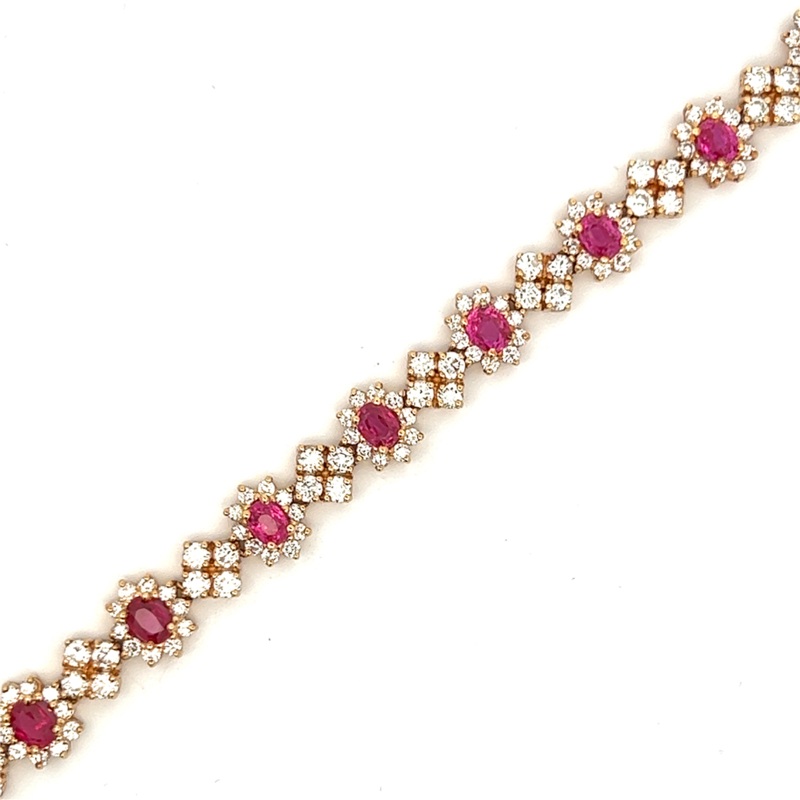 Yellow 18 Karat Unheated Ruby & Diamond Bracelet Estate Jewelry With 4.00Tw Oval Rubys And 4.89Tw Round H/I Si1/Si2 Diamonds Gram Weight: 20Jewelry Type: Color FashionGIA Ruby Origin Report #2175969384