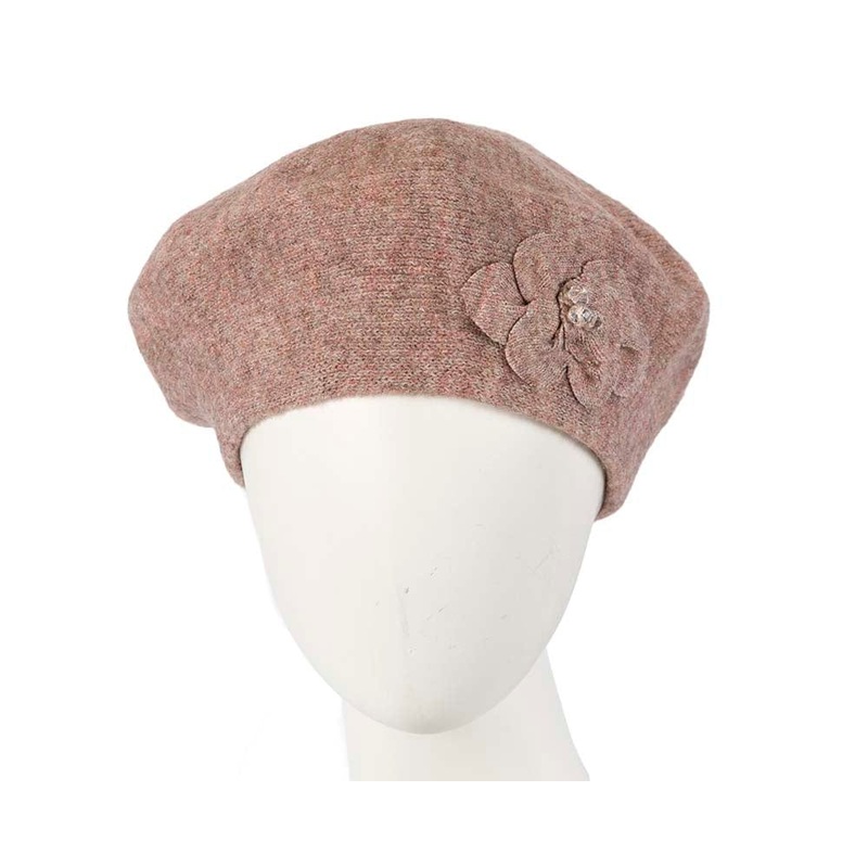 Elegant beige beret with flower trim will warm you up in those cold winter months. Made in Europe Designed in Australia by Max Alexander Warm and soft Wool and acrylic woven fabric