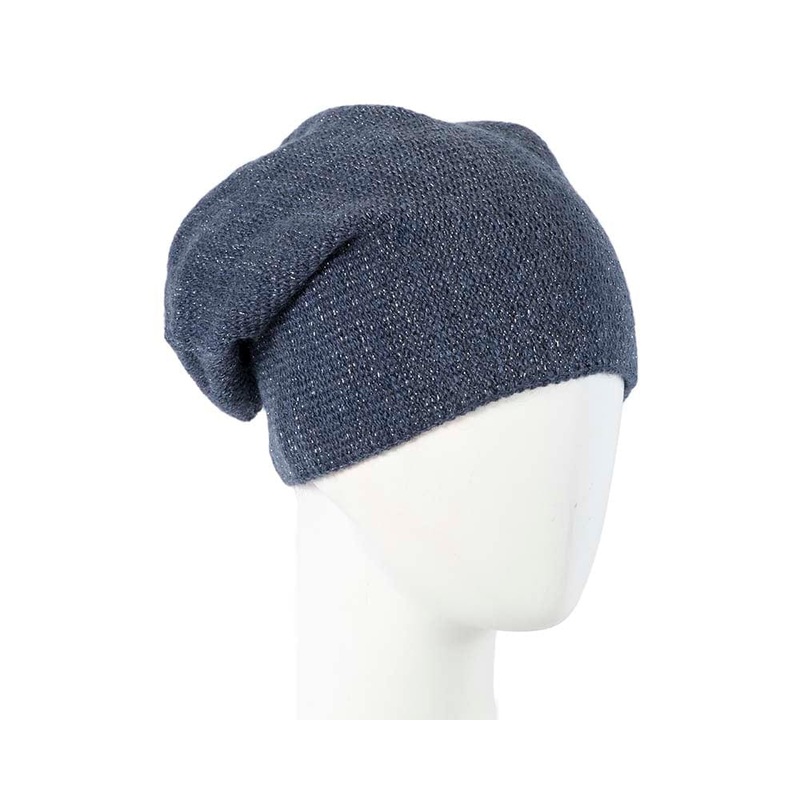 Elegant navy beanie with metallic thread will warm you up in those cold winter months. Beanie is two layer and can be worn in different ways.Made in EuropeDesigned in Australia by Max AlexanderWarm and soft50% wool, 50% acrylic