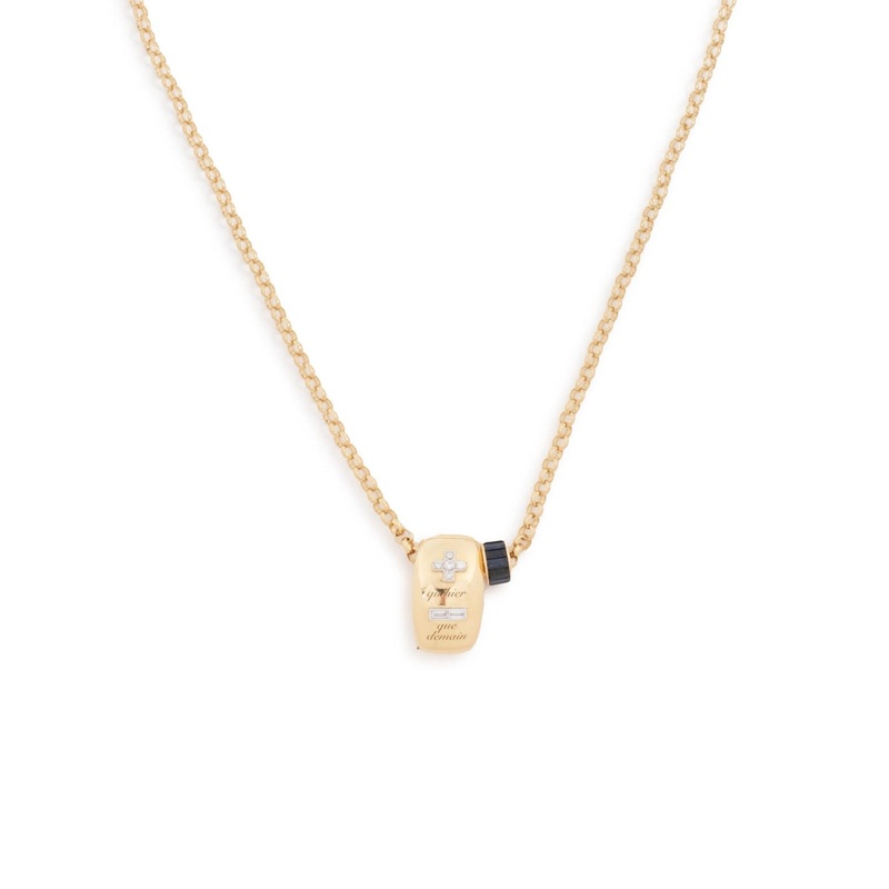 Handcrafted in 18-karat Yellow Gold, this Medium Belcher with the Ever Growing and Blue Sapphire Baguette Heart Beat Necklace symbolizes Love. The plus and minus signs, in combination with two French phrases: Qu’hier, Que Demain translate to today more than yesterday and less than tomorrow Representing the accumulation of experiences that produce more love, a larger heart, and a fuller life: resulting in memories of a treasured life that builds, today more than yesterday and less than tomorrow. Be present today as all of our tomorrows are still in front of us.