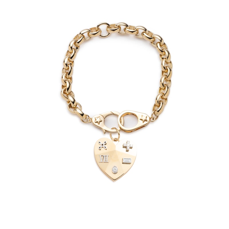 Handcrafted in 18k Yellow Gold, this Heavy Belcher Bracelet with Sister Hooks is paired with our Facets of Love Heart Medallion. The bracelet is composed of our heavy belcher chain and anchored to the chain are sister hooks that fit perfectly intertwined with each other. The medallion represents the many facets of our relationships in the 7 types of love. This helps us appreciate how much love is in our life already. How we think about our relationships allow our love to grow… More than yesterday, and less than tomorrow.