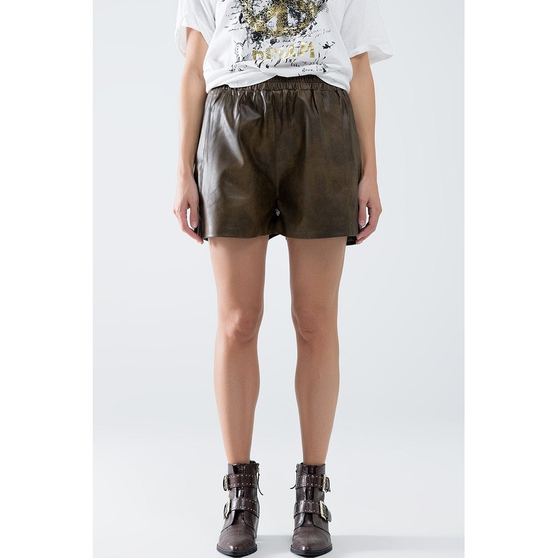 These faux leather shorts in a vintage brown shade offer a chic and urban style perfect for the fall season. Featuring a relaxed fit, elastic waistband, and practical side pockets, these shorts combine comfort with effortless trendiness. Pair them with a w