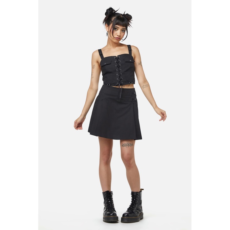 Utility Style Top-Features Cargo Pocket Detailing-Straps Are Adjusted Using Snap Buttons-Centre Front Lacing Detail Is Featured-Made From Cotton-Available In Olive & BlackProduct Code: DGFX039