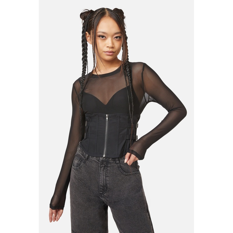Utility Style Underbust Corset -Features All Round Buckle And Strap Design -Includes Front Zip Opening -Sit Under Bust When Worn -Made From Cotton -Available In Black