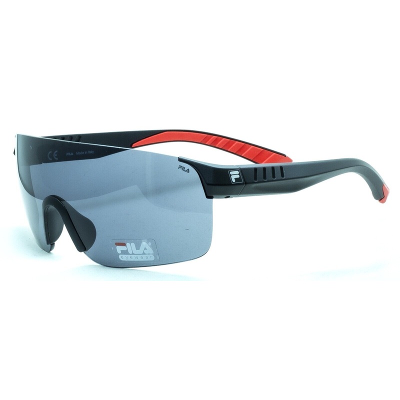 FILA EYEWEAR Rimless Sunglasses - 100% AuthenticSF9380 COL. 0U28 *3Matte acetate frames and arms with red end inlaysGrey tinted single wrap lensBrand new - Never been wornLens Width = 99mmLens Height = 50mmBridge = 0mmTemple (Arm Length) = 125mmMeasures 14