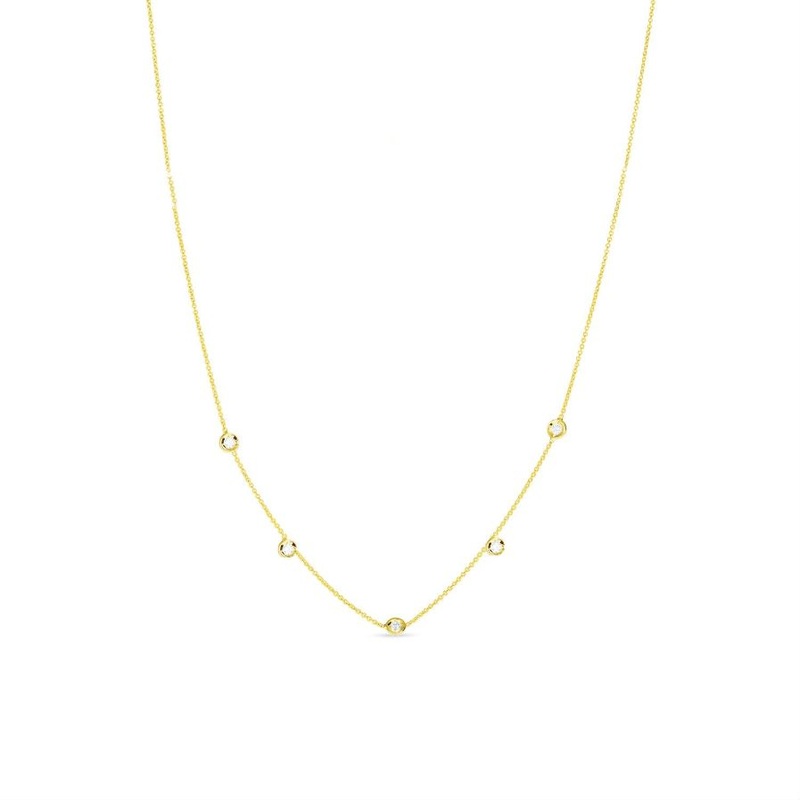 The Five Diamond Droplet Necklace, exclusively designed for , is stunning in its subtle, yet full sparkle and minimal design. This Lily Flo Jewellery necklace exudes a striking, modern sophistication.This 18k gold necklace features five 0.1ctw/3mm natural