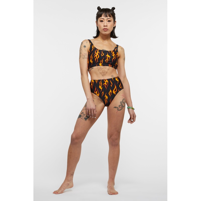 Graphic Bikini Bottom - All-Over Flames Print - High-Waisted - Fitted Shilouette - Bathers - Made From Nylon And Elastane - Available In BlackProduct Code: DGFU270326