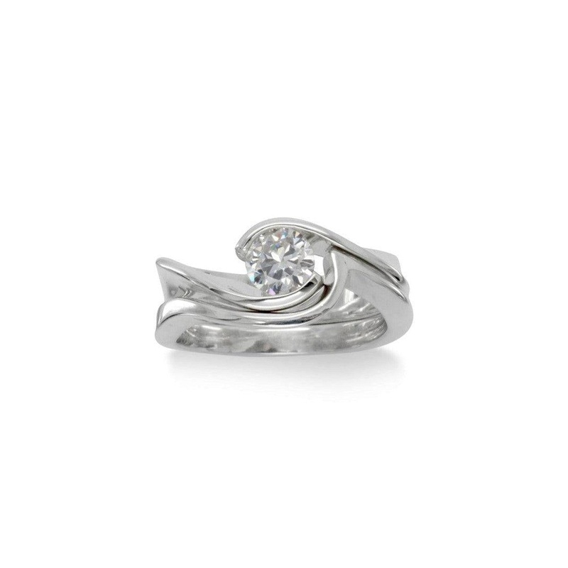 Flat Twist Diamond Engagement and Shaped Wedding Band
