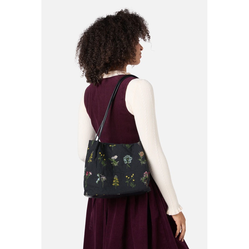 Floral Embroidered Bag– A beautiful shoulder bag– Pretty floral embroidery– Black with multi coloured flowers– Magnet closure