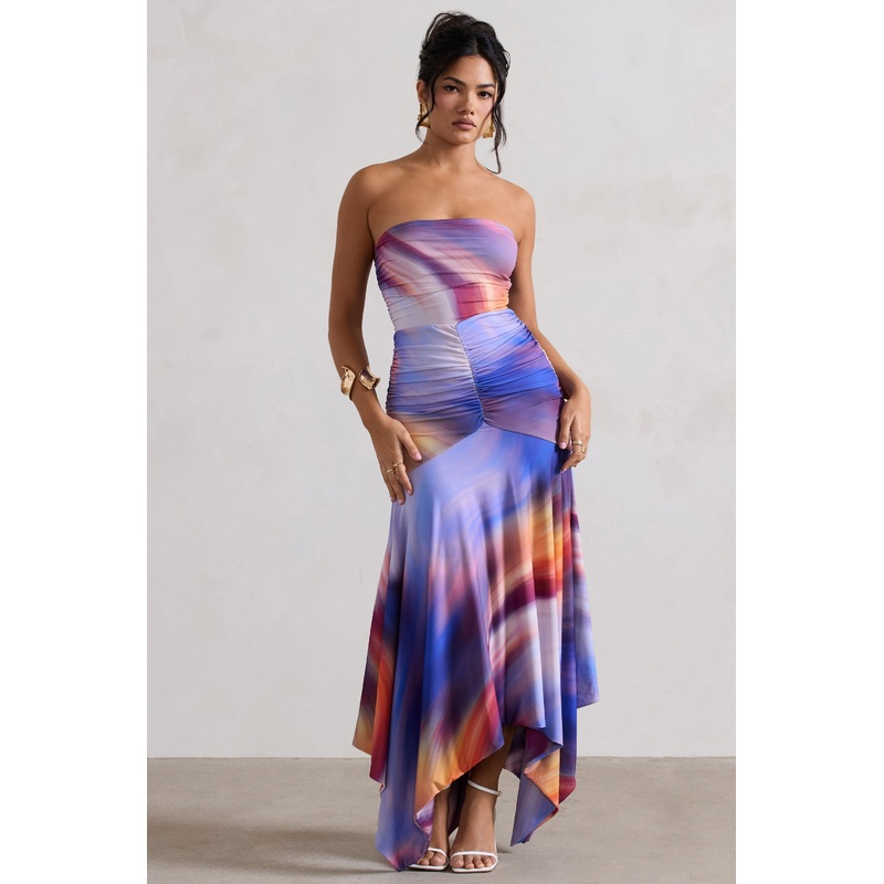 Florianne | Ombre Print Ruched Bandeau Midi Dress