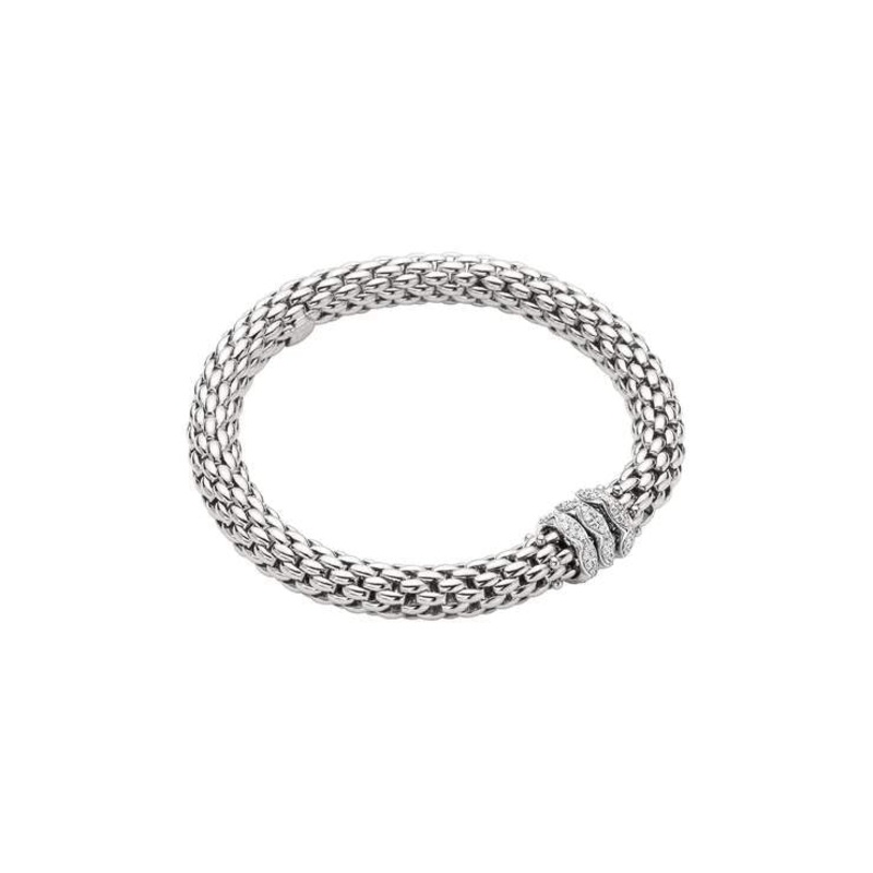 18K White Gold Fope Love Nest, Size Medium, Bracelet Containing 0.57 Carat Total Of Diamonds.