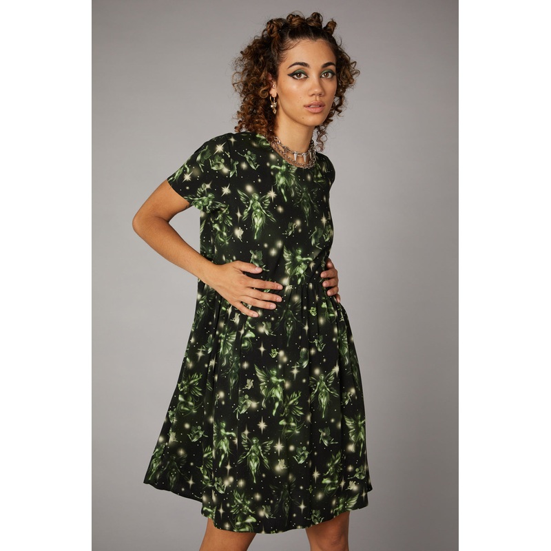 - Made in all over fairy print - Short Sleeve - Relaxed fit - Zip closure at centre back - Avaliable in Black/Green Product Code: BGFT001205