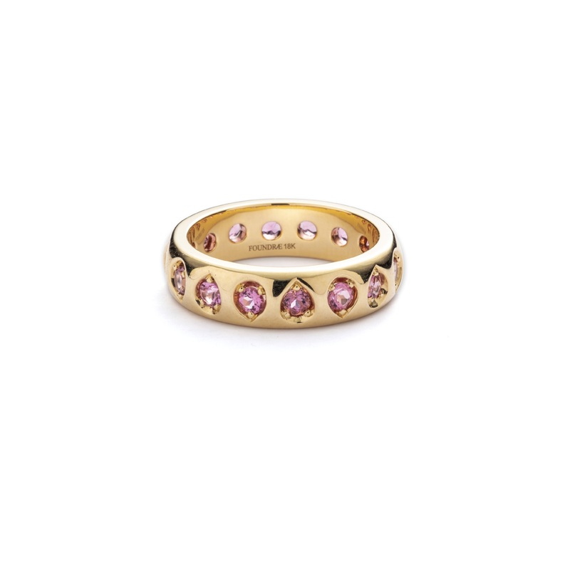 Handcrafted in 18k Yellow Gold and Pink Tourmalines, our Forever & Always a Pair Gemstone Band symbolizes our True Love tenet. The pear-cut stones represent a pairing in your life that just feels right: the true love of a friend, lover, or family member who is now a part of your heart foreverpears for a perfect pair.
