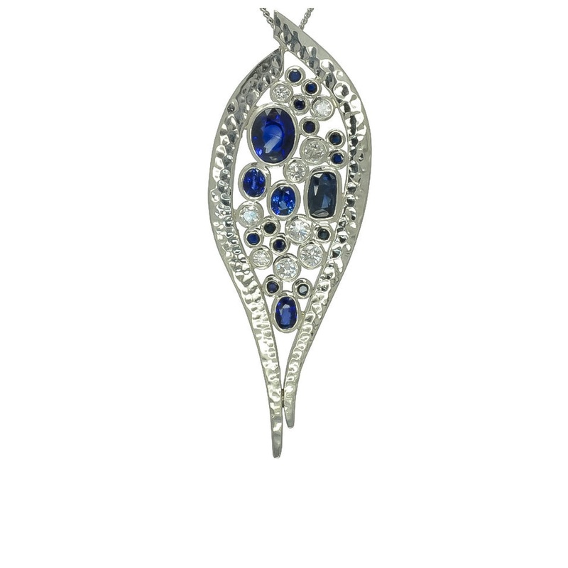 The Forged Sapphire and Diamond Platinum Pendant is one of our bespoke designs,handmadein platinum.If you feel inspired by this design,book a design appointmentwith our Creative Director, Rebecca Smith, to create your own piece of bespoke jewellery.Vibrant