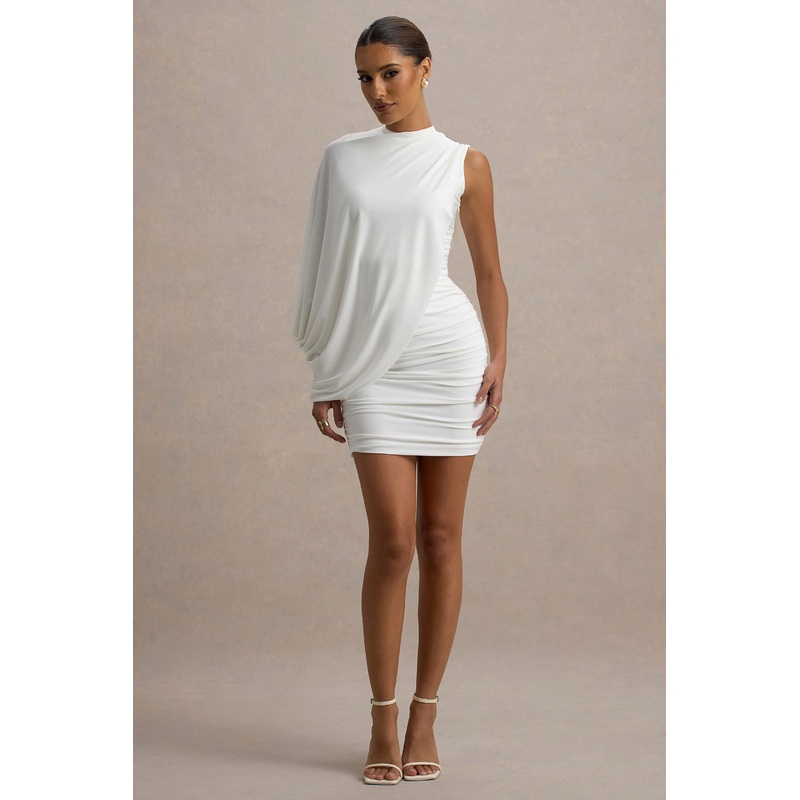 The mini which perfectly combines sophistication and class,Fortuna, has just landed. Cut in our premium white jersey, this piece features a striking one-sleeve detail alongside a ruched silhouette for a modern, contemporary look.Fortuna pairs perfectly wit