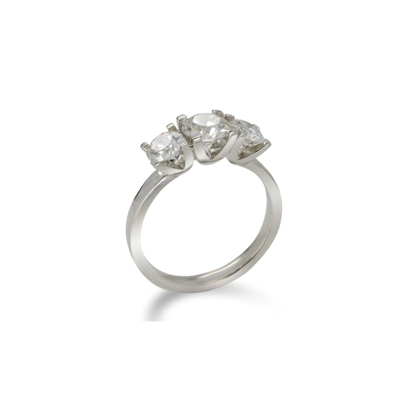 Customisation Options: Personalise the Four Claw V Set Platinum Trilogy Ring by choosing a coloured semi-precious gemstone at the centre, like aquamarine or sapphire or a different-sized diamond.Use ‘Customise’ to get started.