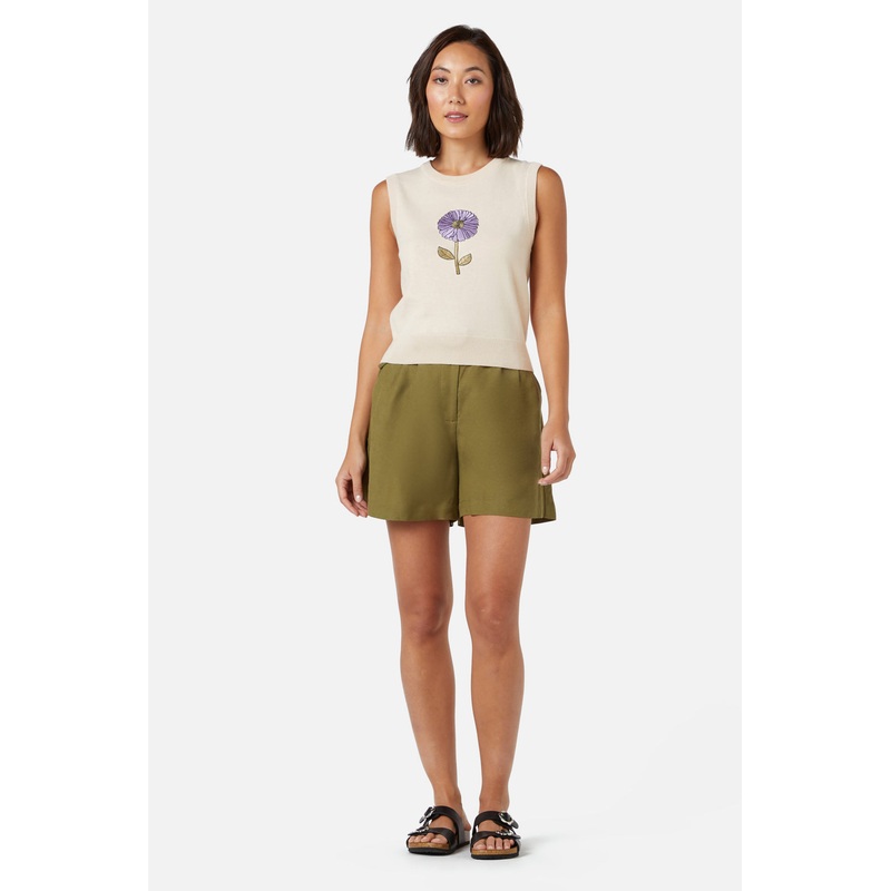 Retro flower embroidered knitted vest- layer this sweet floral vest for a fresh summer look- rounded neckline- ribbing at armhole, neckline & hem- knitted of a cotton yarn- available in creamProduct Code: PGFW540
